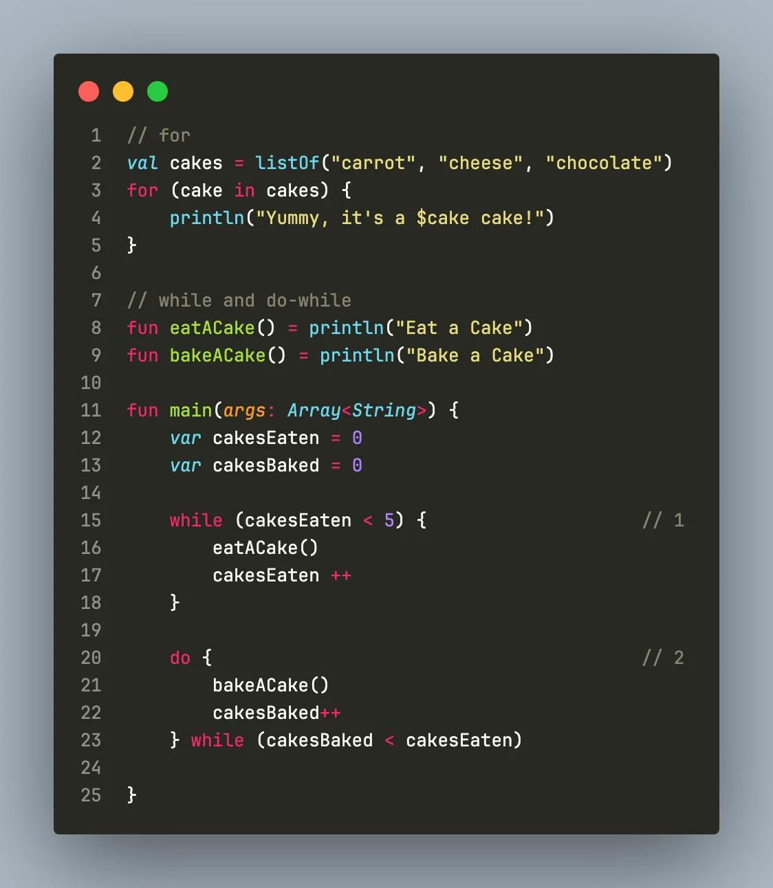 Kotlin은 일반적으로 사용되는 모든 루프(for, while, do-while)를 지원합니다.